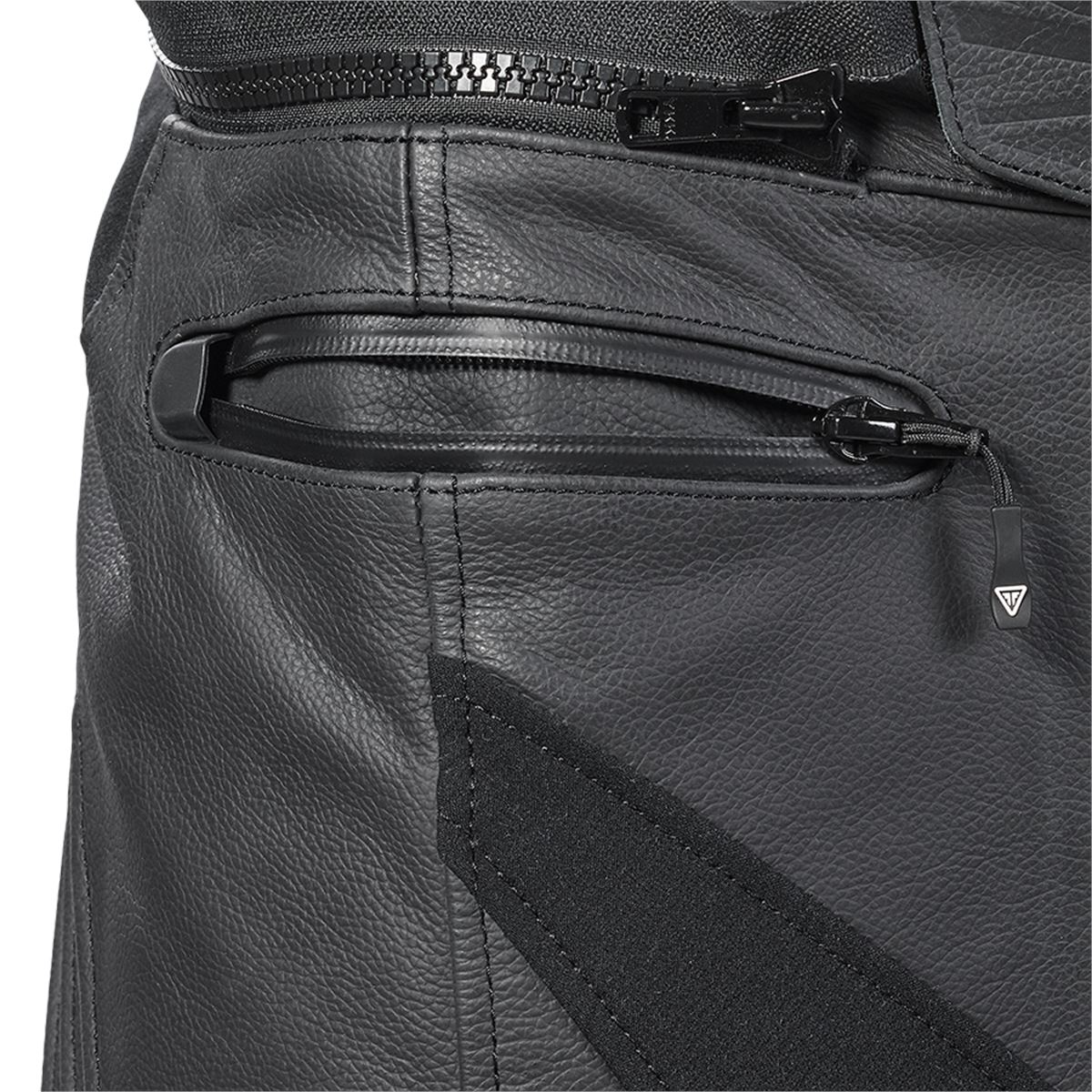 Die Roadster-Konstruktion aus Sportleder wurde für den Einsatz von Protektoren an Knien und Hüfte mit zusätzlichen, aus elektroplattiertem TPU Material geformten Kniebereichen konzipiert. Die Konstruktion mit Netzfutter erhöht die Luftzirkulation. Zudem verbessern dunkel reflektierende Einsätze und die kontrastierende Farbgebung die Sichtbarkeit.