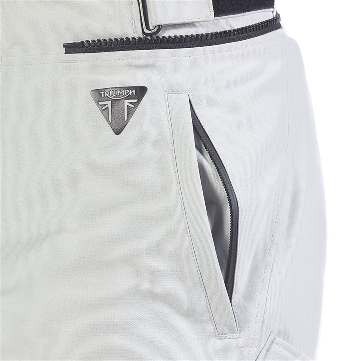 Gefertigt aus hellem, dreilagigem, funktionalem TriTech Obermaterial für herausragende Wasserdichte und Atmungsaktivität und mit einer schmutzabweisenden Teflon Beschichtung ausgestattet. Mit speziellem ergonomischem Schnitt, leicht herausnehmbaren D3O® Ghost Knie- und Hüftprotektoren, herausnehmbarem, isolierendem Innenfutter und einem Verbindungsreißverschluss für dieKombination mit jeder Adventure-Jacke von Triumph.