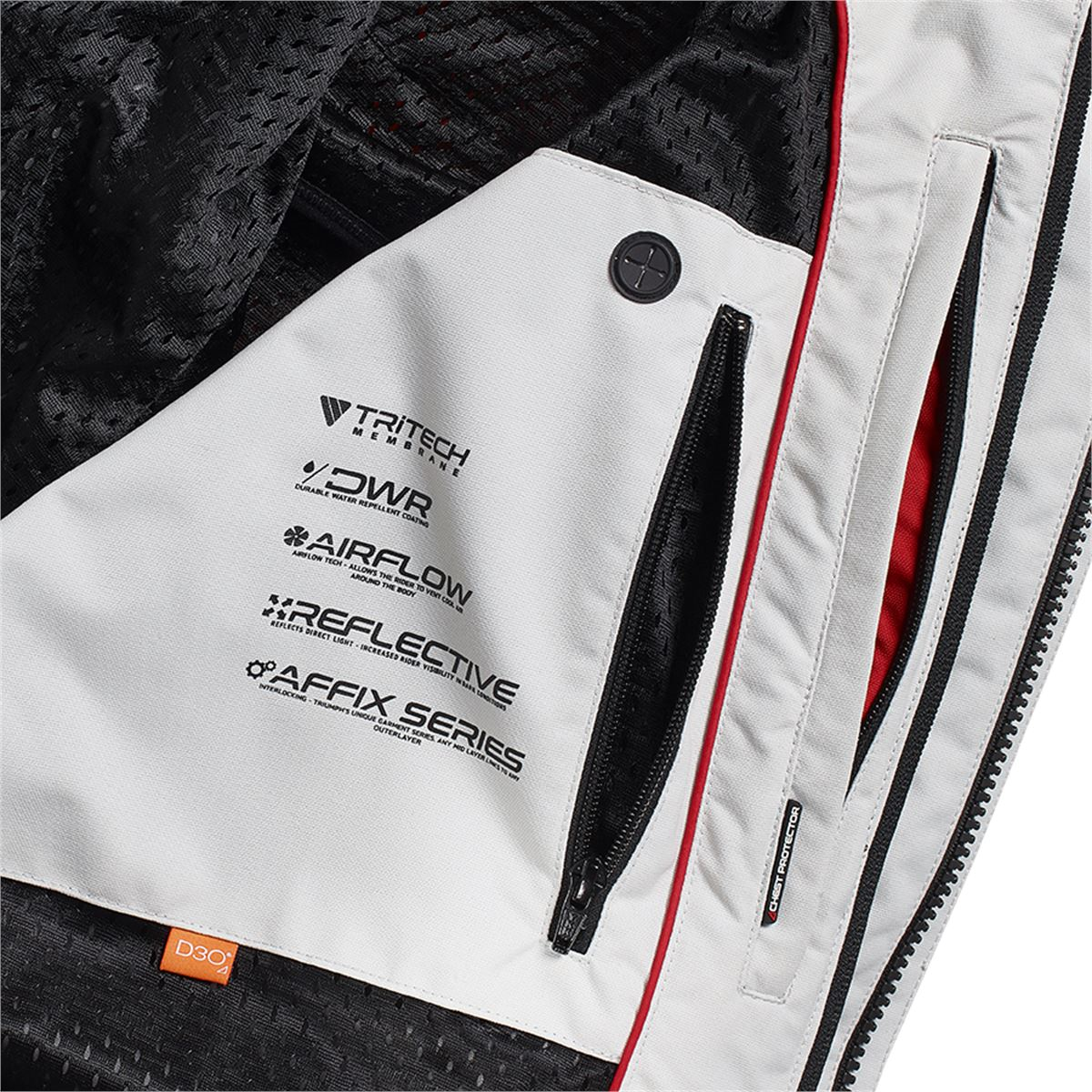 - Wasserdichtes Membranfutter mit TriTech-Technologie. TriTech bietet hohe Wasserfestigkeit und Atmungsaktivität