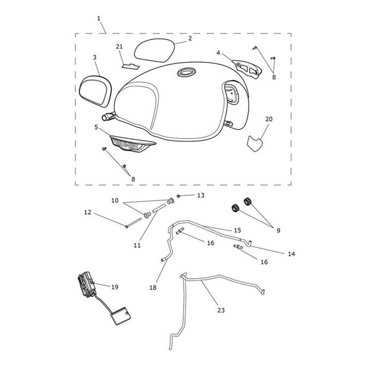 Triumph Fuel Tank Assembly, Aegean Blue/New England White